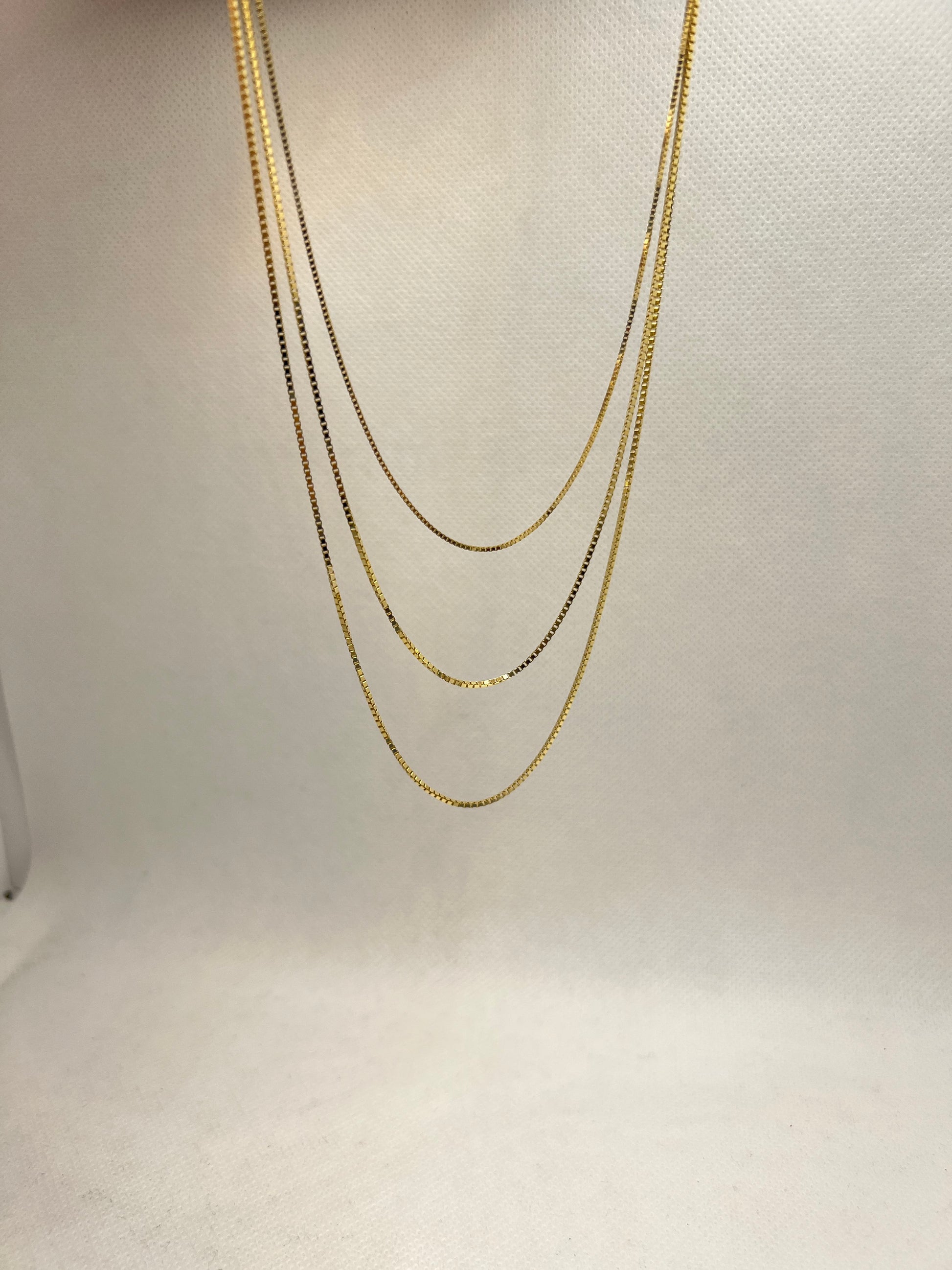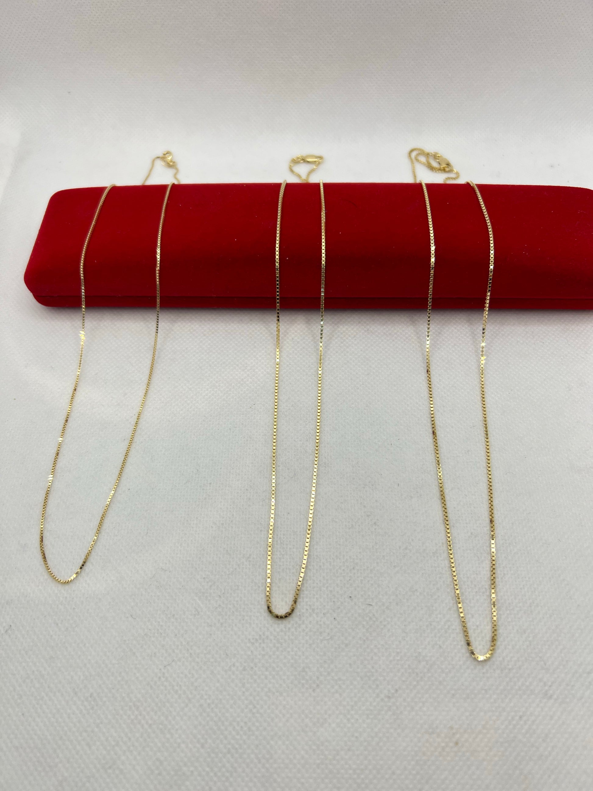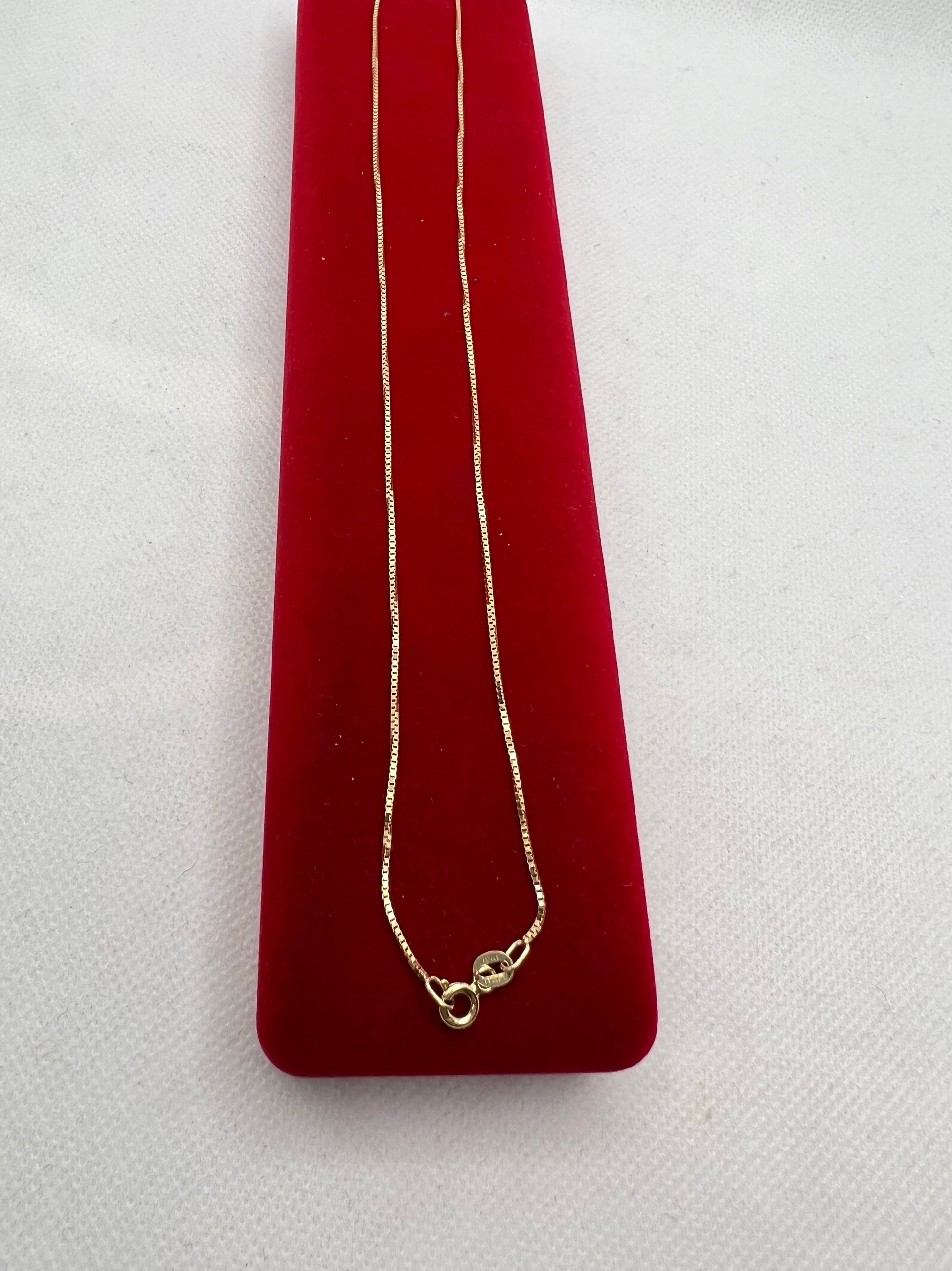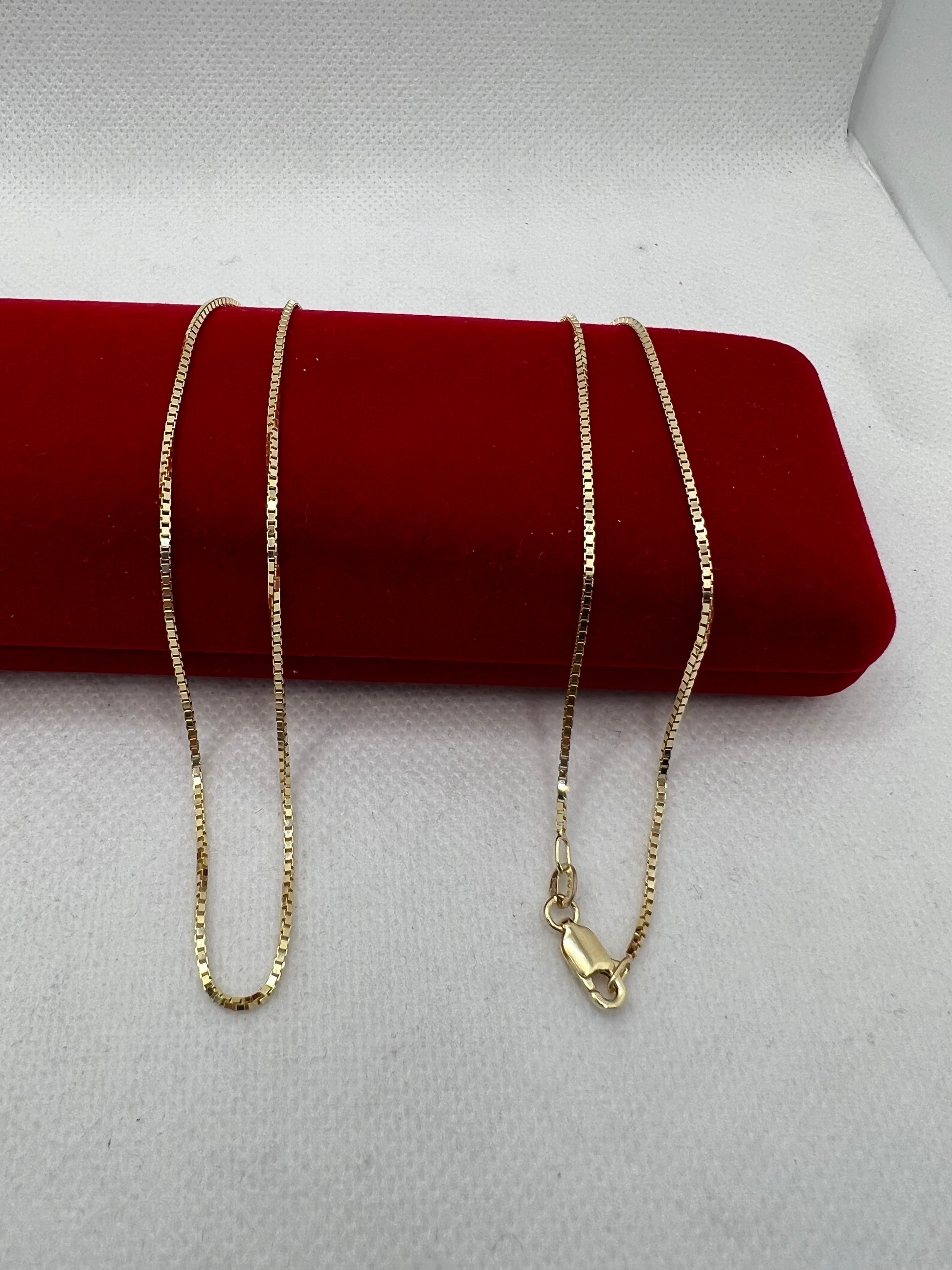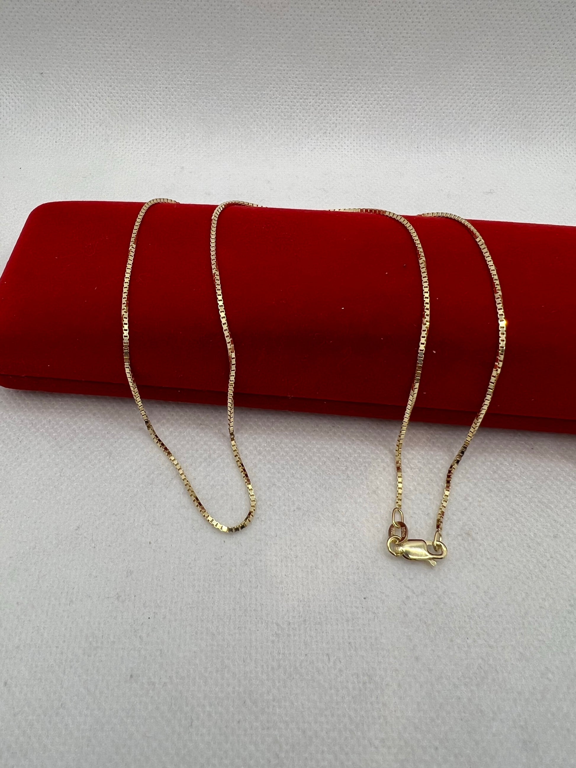 Simple et pourtant remarquable, cette chaîne est un accessoire élégant au quotidien. Confectionnée en or 10 carats et polie pour une finition brillante, cette chaîne vénitienne de 0,5 mm et 1 mm de large se ferme grâce à un anneau à ressort et un fermoir mousqueton.