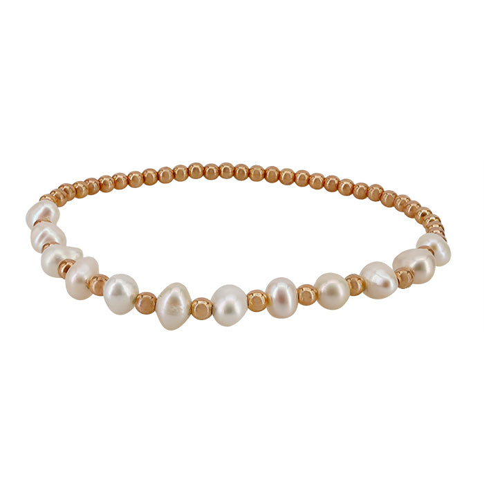 Perles boules de 3 mm en or rempli 14 carats avec perle d'eau douce 5x6 mm, bracelet élastique