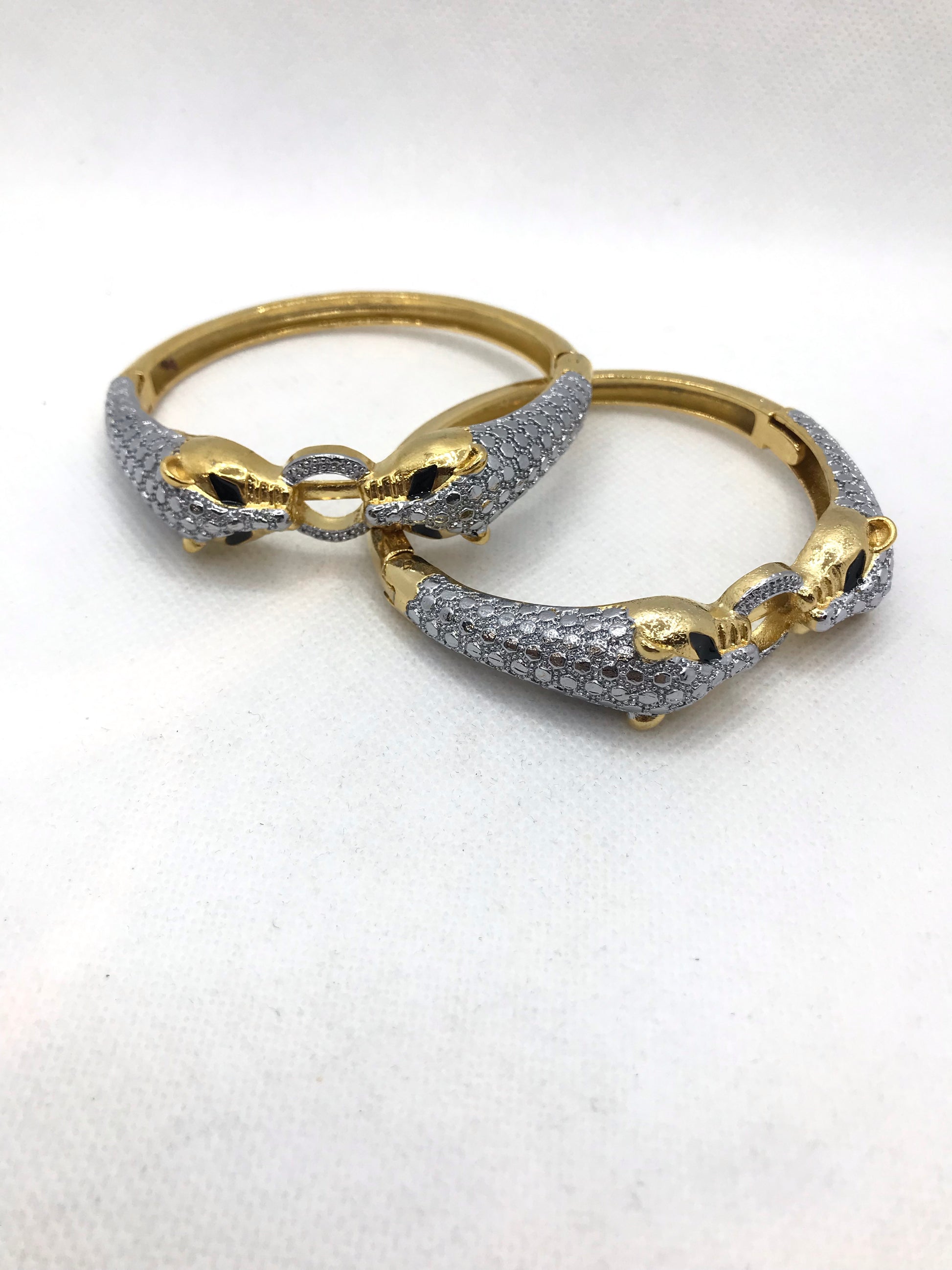 Plaqué or 18 carats sur cuivre. Couleur garantie pour un usage quotidien. Sans nickel, ni plomb, hypoallergénique. Entièrement neuf et jamais utilisé. Bracelet taille unique.