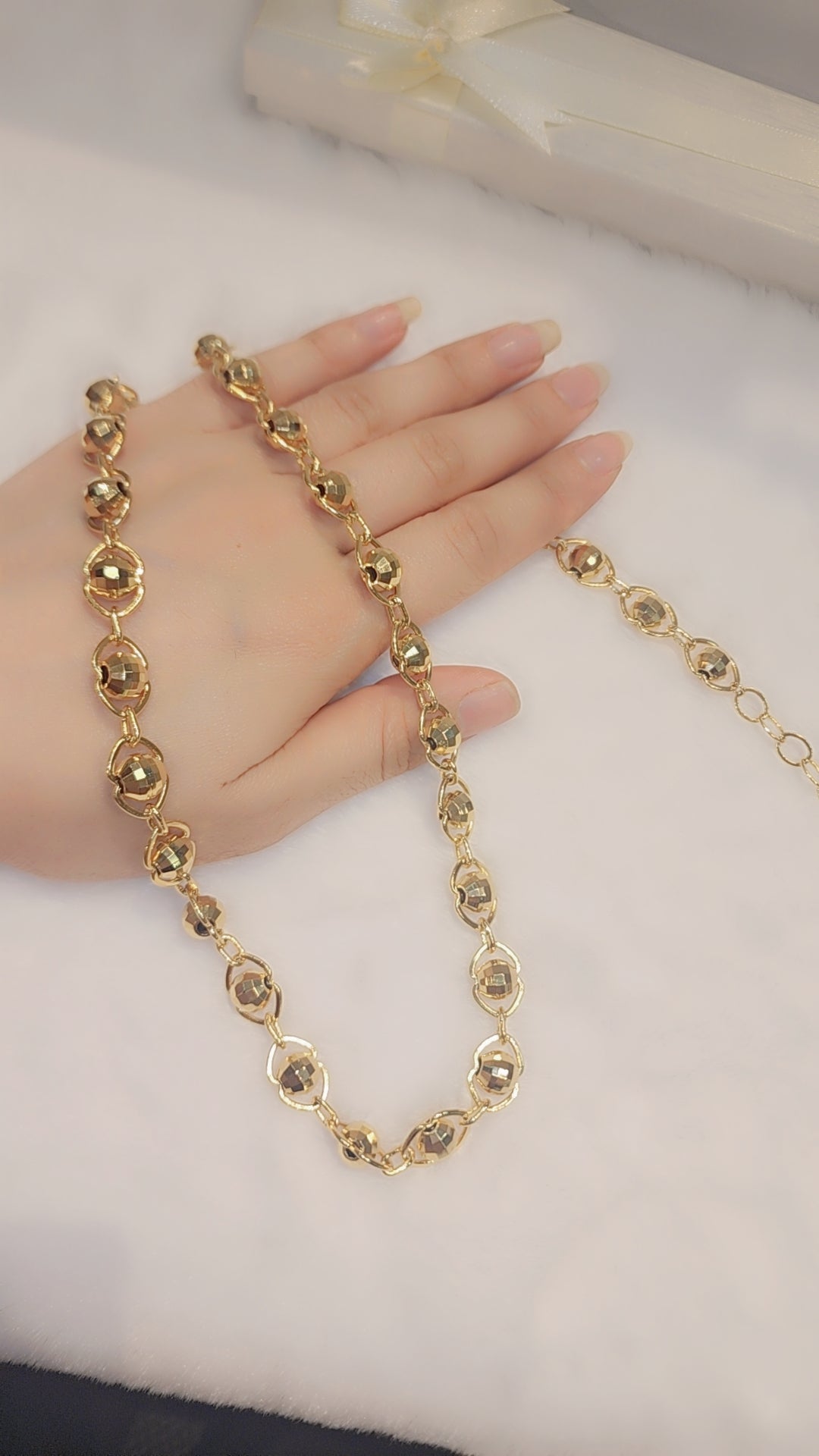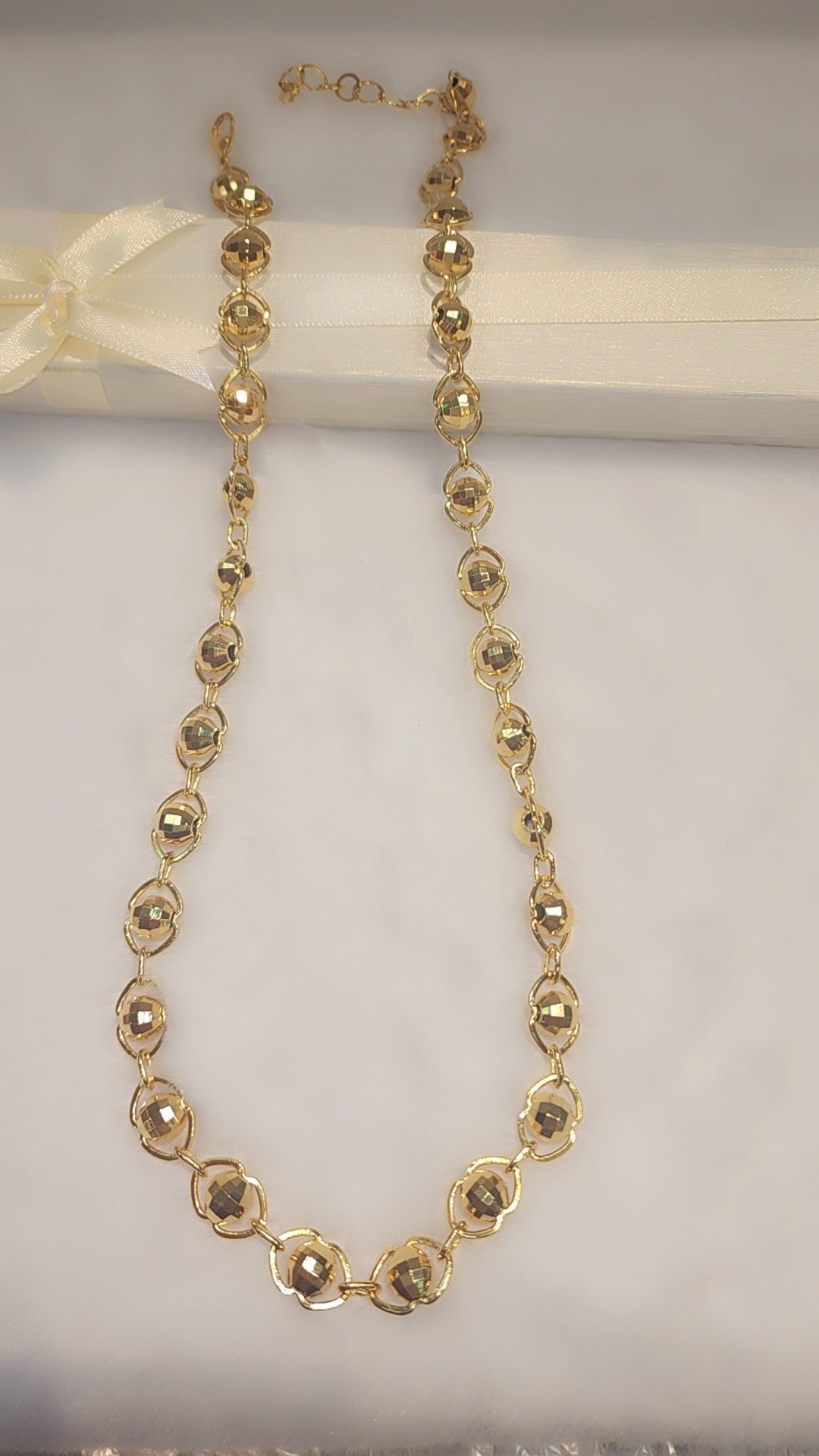 Fabriquée avec précision, cette chaîne plaquée or arbore un design boule intemporel. Un ajout luxueux à toutes vos tenues, grâce à sa construction durable et sa finition élégante. Sublimez votre look avec cet accessoire indispensable.