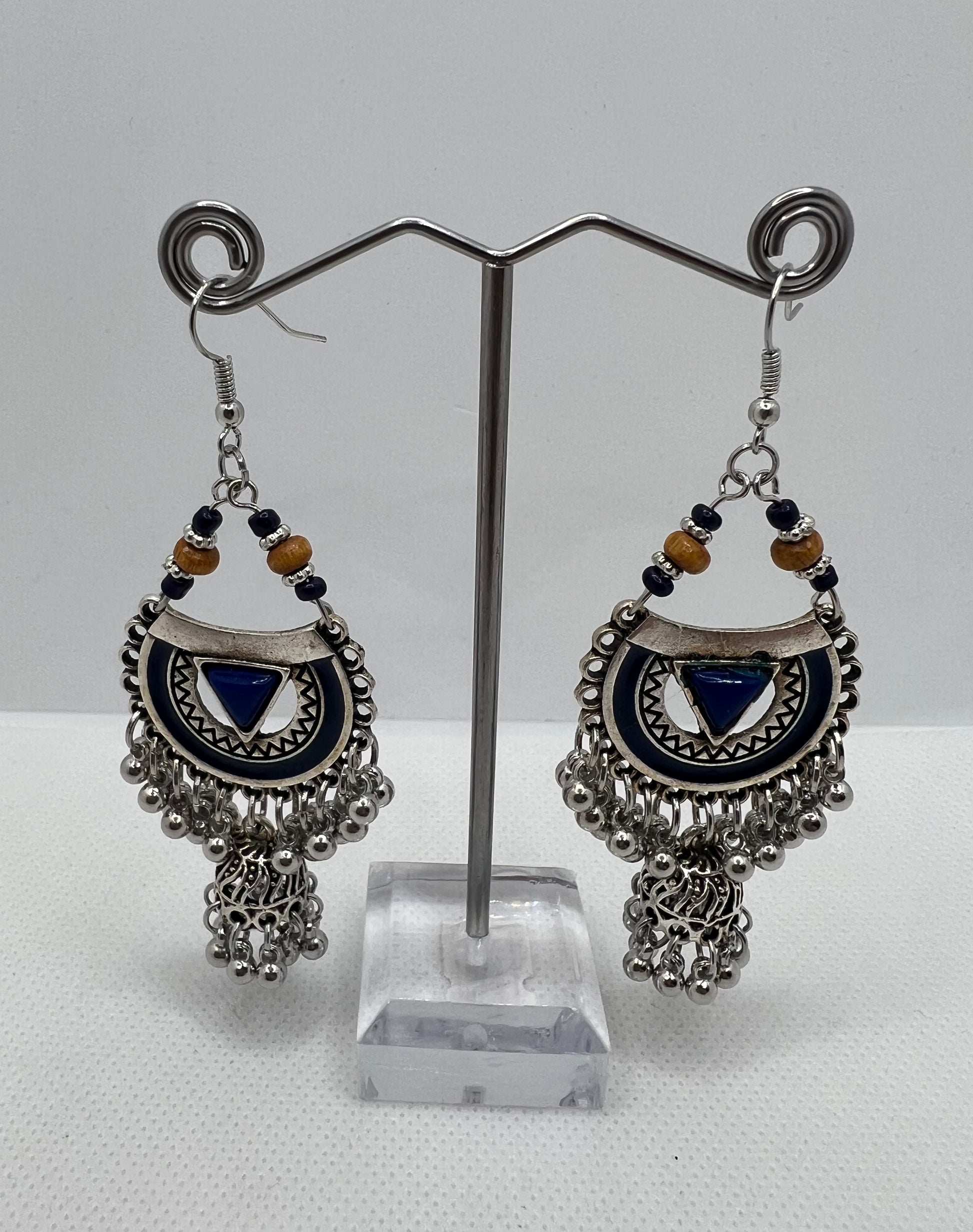 •Boucles d'oreilles cloutées en pierre oxydée.