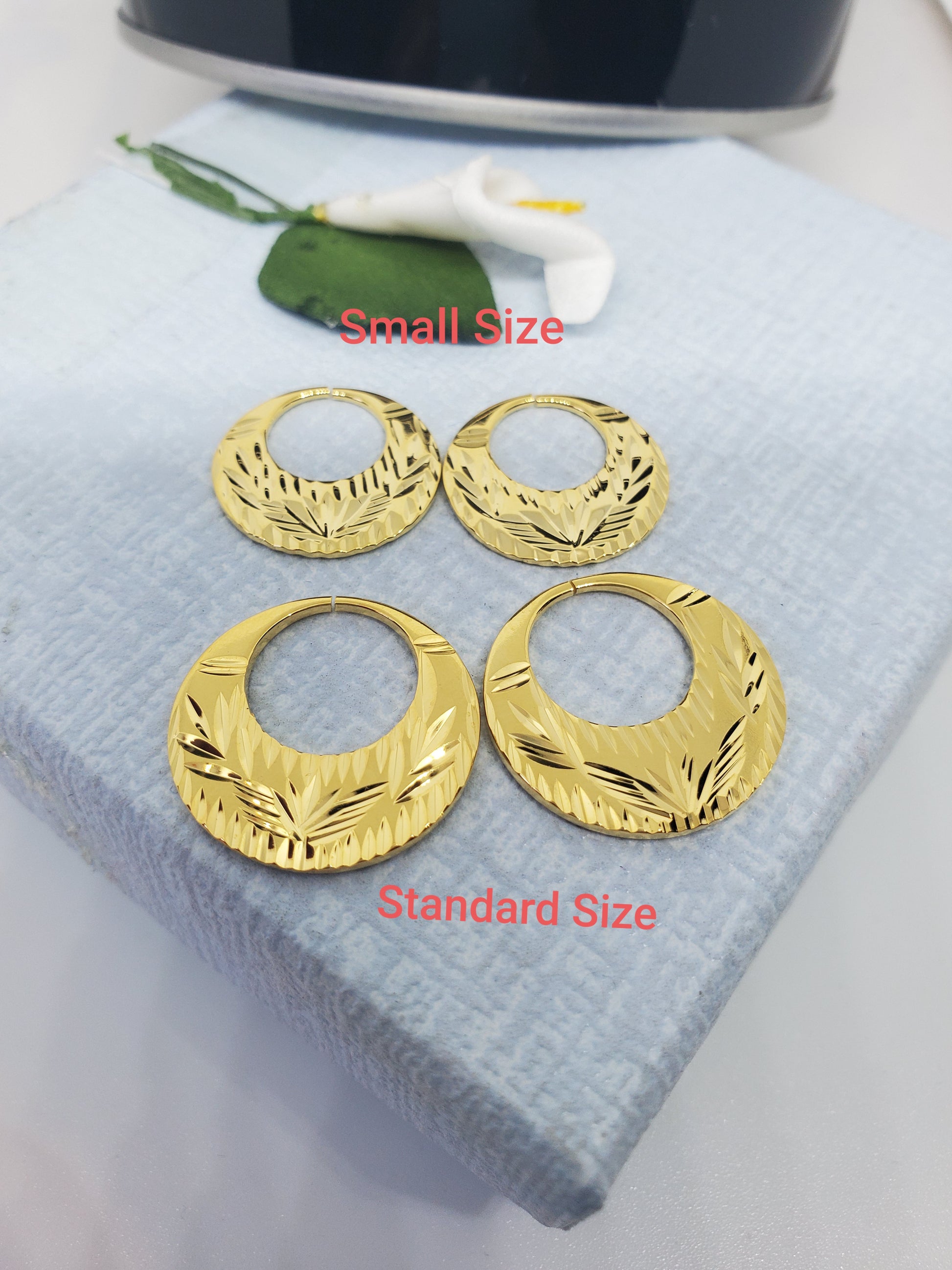 Plaqué or 18 carats sur argent sterling 925. Couleur et brillance garanties pour un usage quotidien. Avec seulement 2 grammes par paire, elles sont les boucles d'oreilles les plus légères de notre collection Nattiyan.
