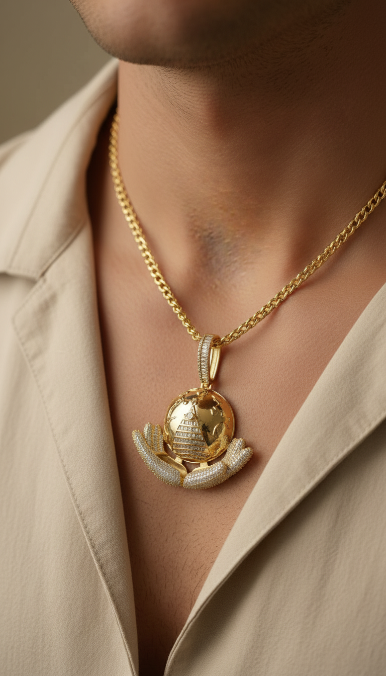 ਇਸ ਆਈਸਡ ਆਊਟ ਪੈਂਡੈਂਟ 'ਤੇ ਸ਼ਾਨਦਾਰ ਸੋਨੇ ਦੀ ਪਲੇਟਿੰਗ ਹੈ ਅਤੇ ਇਹ ਚਮਕਦਾਰ ਕਿਊਬਿਕ ਜ਼ਿਰਕੋਨੀਆ ਪੱਥਰਾਂ ਨਾਲ ਸਜਾਇਆ ਗਿਆ ਹੈ। ਕਿਸੇ ਵੀ ਪਹਿਰਾਵੇ ਵਿੱਚ ਸ਼ਾਨ ਅਤੇ ਸੂਝ-ਬੂਝ ਦਾ ਅਹਿਸਾਸ ਜੋੜਨ ਲਈ ਤਿਆਰ ਕੀਤਾ ਗਿਆ ਹੈ। ਇੱਕ ਸਟਾਈਲਿਸ਼ ਅਤੇ ਪਾਲਿਸ਼ਡ ਦਿੱਖ ਲਈ ਸੰਪੂਰਨ ਸਹਾਇਕ ਉਪਕਰਣ।