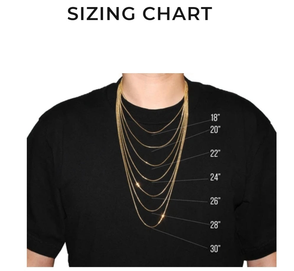 ਮਰਦਾਂ ਲਈ ਚੇਨ ਦਾ ਆਕਾਰ 20” ਅਤੇ 24” ਵਿੱਚ ਉਪਲਬਧ ਹੈ।