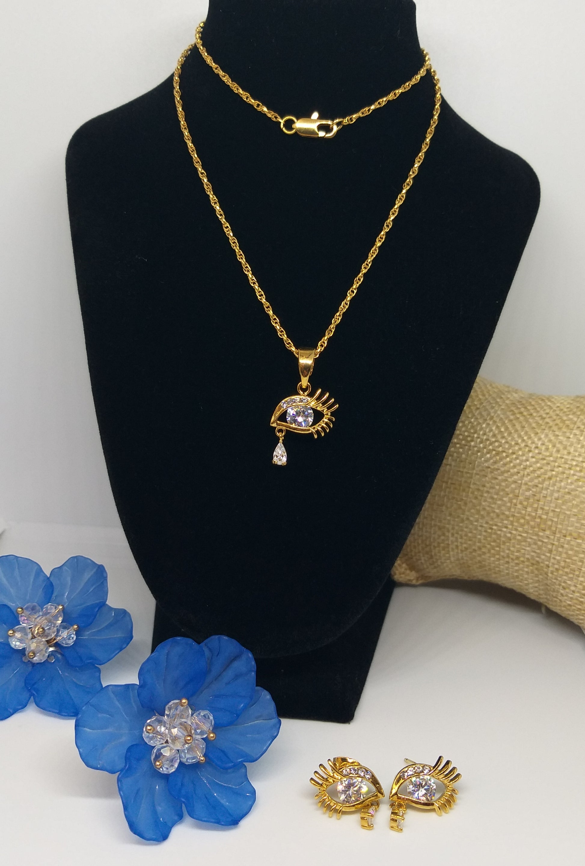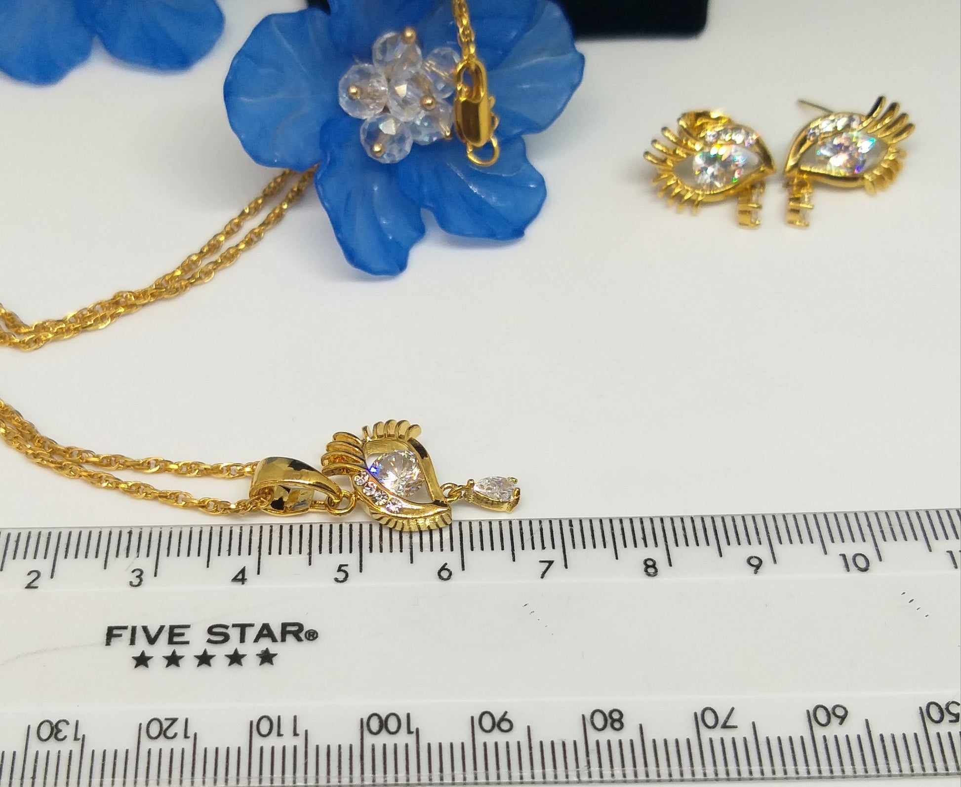 18k Gold plated with cubic zirconia pendent set with matching earrings.