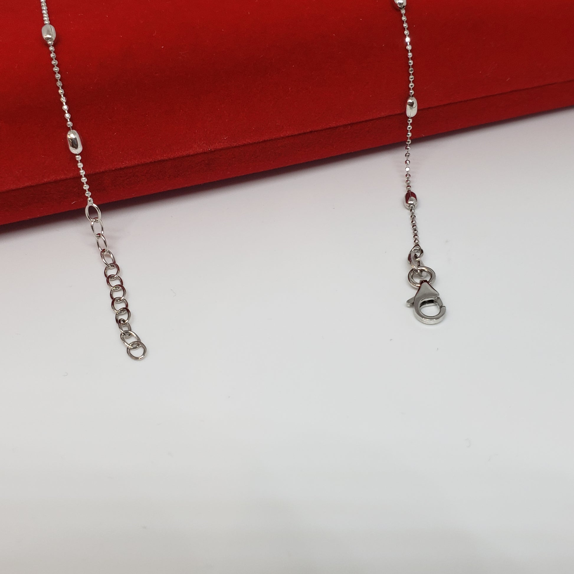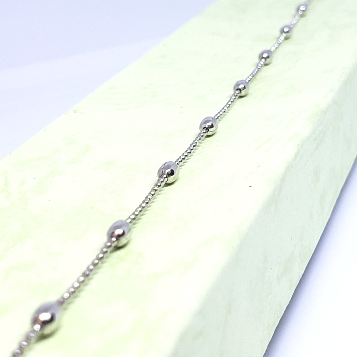 Material is 925 Sterling silver from Italy witch is very high end and excellent quailty and finish. Its 1.5mm thick, length is adjustable to maximum of 10.5 inches.
