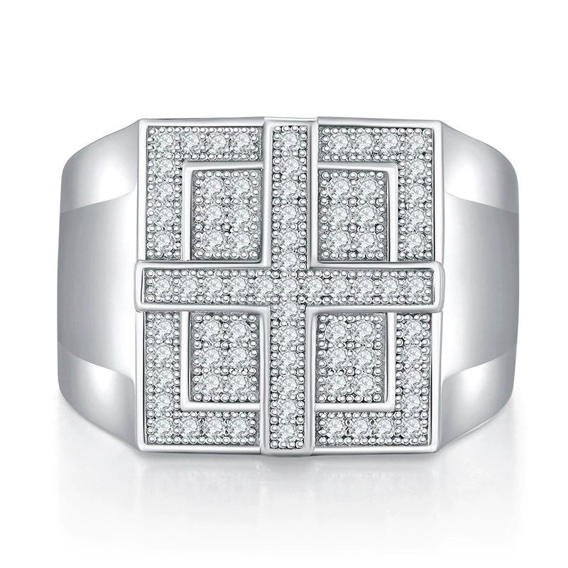 Add a touch of divine style to any look with our Real Silver Moissanite Cross Ring. Made from durable 925 silver, this unique ring features a striking cross design that is perfect for men. The centerpiece of the ring is a shimmering moissanite stone, adding a touch of sparkle to this stylish and meaningful piece.