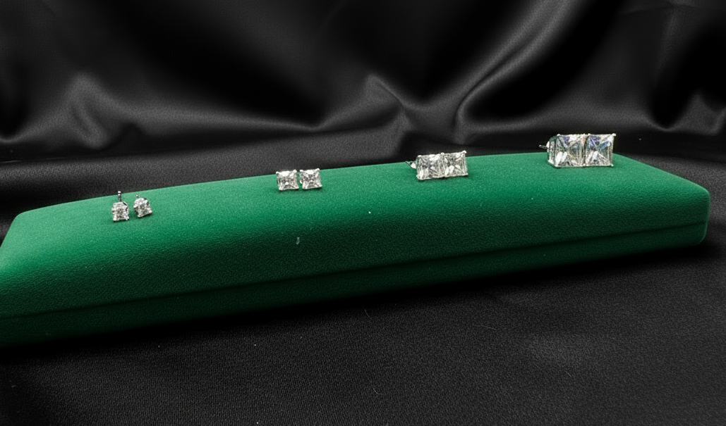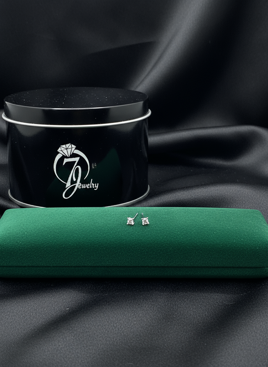 Real Silver Studs (Square Stone)